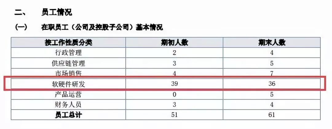 不過(guò)挖貝網(wǎng)注意到,去年貝倫思對在職員工情況進(jìn)行了調整,員工總數增加10人,軟硬件研發(fā)員工從期初的39人下降到期末的36人,削減3人。